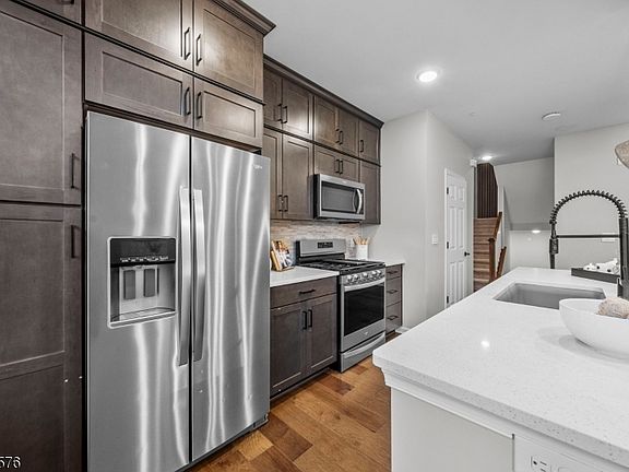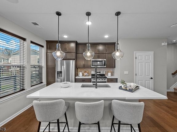 Discover modern living in this 2022-built 3 bedroom, 2.5 bath townhome located just 30 minutes from New York City. Perfect for commuters, this home offers quick access to the train station to NYC, a private 1-car garage, and EV charging capability. The open concept main level features a chef inspired kitchen with stainless steel appliances, quartz countertops, upgraded cabinetry, and a seamless walkout to a private deck, ideal for entertaining. The spacious primary bedroom suite includes a custom walk-in closet, double vanity en suite, and upgraded tile and fixtures for a true luxury feel. Enjoy resort style community amenities, including a fitness center, swimming pool, tennis courts, billiards room, and an elevated rooftop entertainment area. With modern finishes, smart layout, and exceptional commuter convenience, this property is the perfect choice for buyers searching for a luxury townhome near NYC, new construction townhome, or move-in ready home with amenities. Not to mention low taxes with a 30yr Pilot Program.