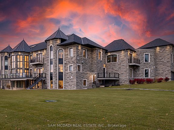 Welcome To 4 St. Lukes Court, A Breathtaking 13,000+ Sq. Ft. Estate Set On Two Pristine Acres With Scenic Ravine Views, Nestled In The Prestigious Castlemore Estates Neighbourhood. This Modern Victorian-Inspired Masterpiece Combines Timeless Architecture With State-Of-The-Art Luxury, Showcasing A Grand Stone Exterior, Soaring Turret Towers And A Dramatic Double Staircase Beneath 22 ft. Ceilings. At The Heart Of The Home Lies A Stunning Chefs Kitchen, Featuring Dual Waterfall Islands, Top-Tier Wolf And Miele Appliances, And A Separate Spice Kitchen Offering Both Beauty And Functionality For Everyday Living And Exceptional Entertaining. The Upper Level Boasts Five Spacious Bedrooms, Including Three Stunning Primary Suites With Spa-Like Ensuites, Private Balconies, And A Turreted Lounge. The Above-Ground Lower Level Offers A Legal Two-Bedroom In-Law Suite, Home Theatre, Gym, Sauna, And Entertainment Lounges With Full Kitchen And Bar. Complemented By Sun-Filled Spaces Enhanced With Opulent Finishes Throughout, Each Level Seamlessly Accessible By A Custom Elevator For Seamless Accessibility. Featuring A Five-Car Garage, Grand Fountain Courtyard, Expansive Deck, And Meticulously Landscaped Grounds, This One-Of-A-Kind Estate Is A Must See!