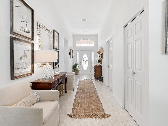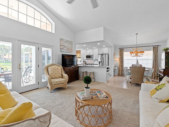 How much do you love being around water? Retention lake at rear of property, access to Intercoastal and Ocean! And talk about updates... Kitchen totally remodeled in 2021, guest bathroom redone in 2021, master bath updated in 2023, exterior painted in 2020. Lanai drains and ceiling fans replaced in 2022, floor was treated in 2023. New washer April 2023. HOA includes clubhouse, community pool, tennis courts, pier with fish cleaning stations on Intercoastal, guard gate and more! This is a must see! All appliances included. Under counter ice maker can be switched out for a wine cooler if desired. Survey from 2019 available. Schedule your showing today!