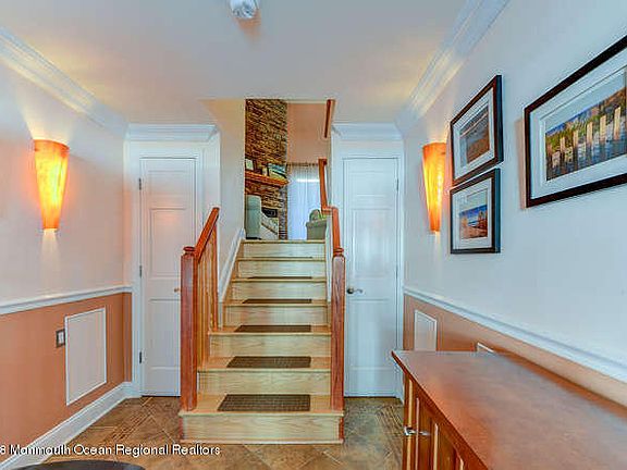 Desirable Oceanfront Location! Sea Bright Village offers fee simple ownership and is located on the ocean side of Sea Bright. Beachfront community with charm and convenience. Gorgeous 2 bedroom 2-1/2 bath townhouse...This one of a kind townhouse has been upgraded and enhanced with the finest materials and expert craftsmanship; Designer gourmet kitchen featuring custom mahogany kitchen cabinets with built-in matching china buffet; Floors are wood on 2nd and 3rd floors featuring Bamboo flooring in living room. Master suite encompasses private master bathroom with marble throughout, double sinks, steam shower and jacuzzi tub. Living room features gas burning fireplace with custom stone and mantle; outdoor deck and patio.This oceanfront location with beach at your feet is close to shopping,