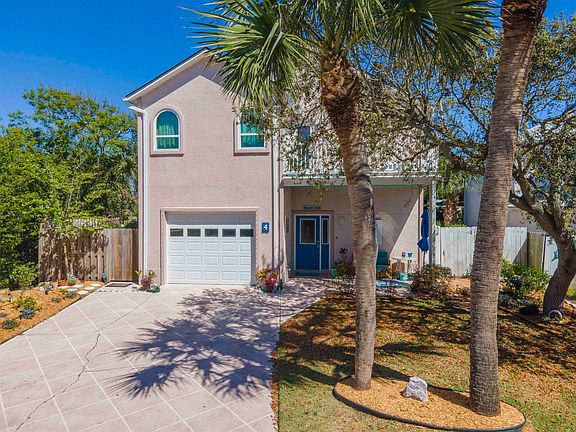 Positioned on the beach side of A1A, between Butler and Crescent Beach, this home is part of a cozy, established neighborhood and is just a one-minute walk from the private community boardwalk to the beach. The property, which has been lovingly maintained, is flooded with natural light and offers a spacious, semi-open floor plan. This layout is perfect for accommodating family and friends, allowing them to flow seamlessly between the living room, dining room, and large kitchen. The front porch is a charming spot for small gatherings, and the L-shaped patio and fenced backyard provide additional space for entertaining. A new roof installed in July 2025 with transferable warranty! System plus GAF Registered Warranty, 10 Year Labor Warranty and Lifetime product Warranty. The home features 10-foot ceilings downstairs with crown molding that continues to the upstairs landing, where you’ll find the south-facing deck and three generously sized bedrooms. Have coffee on the deck, enjoy the sunrise, or sip a libation and take in the stars. This home is convenient to shopping and dining, parks, the Amphitheatre, and our historic downtown. Relax and embrace a beachy lifestyle!