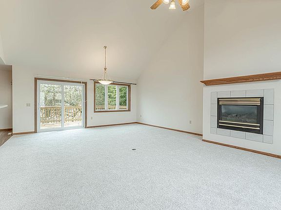 Bright and inviting ranch-style condo nestled on a peaceful cul-de-sac in an established 55+ community. This spacious home boasts thoughtful updates throughout, including a brand-new deck, fresh carpeting, select new windows, & a new LL patio dr. Open-concept flr plan offers vaulted ceilings, abundant natural light, & a cozy gas fireplace in the living rm. Enjoy meals in the formal dining or the intimate dinette just off the galley-style kitchen. Convenient main-level laundry adds everyday ease! Primary suite includes vaulted ceilings, walk-in closet, & a private bath w/ a walk-in shower. LL presents a finished bathrm & closet area. Extensive repair work in LL has been professionally completed, providing a blank canvas for your customization! Ample storage throughout!