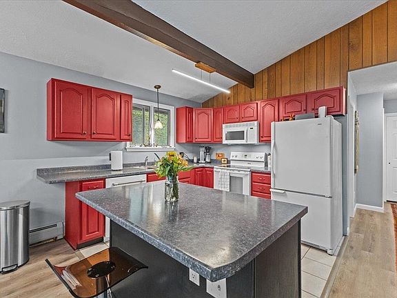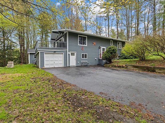 This distinctive 4-bedroom, 2-bathroom home is anything but ordinary. With soaring vaulted ceilings, exposed beams, and a striking central hearth, the main living area offers a bright, open-concept layout that feels like a contemporary chalet. Brand-new flooring flows throughout, while generous windows flood the space with natural light. Step through sliding glass doors onto a peaceful deck nestled among the trees with sunsets that peak through—your own private retreat. The main level also features two comfortable bedrooms, a full bath and laundry room. A standout feature of this property is the fully finished, two-bedroom accessory apartment on the lower level. With its own separate entrance, it's move-in ready and ideal for generating rental income or accommodating guests. Prefer more space? The two living areas can easily be combined into one expansive single-family home. Set back from the road on a wooded 0.8-acre lot, you’ll enjoy just the right balance of privacy and a neighborhood feel—only minutes from town. With a new roof, lighting and flooring, this home is ready for you to move in and make it your own.