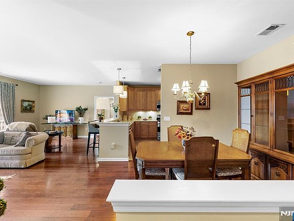 Welcome to the top level Begonia model home in one of the area's premier gated 55 and over communities. This beautifully designed, all-on-one-level home offers a well-thought-out floor plan with a separation between bedrooms for enhanced privacy. The living room provides a welcoming space for everyday relaxation or entertaining guests. Hardwood floors, upscale lighting, and natural light create a warm, inviting atmosphere. The kitchen is spacious and well-appointed with custom cabinetry, stainless steel appliances, and an open-concept breakfast bar, making it functional and stylish for cooking and entertaining. A formal dining room sits adjacent to the kitchen and living areas. There are 2 generously sized bedrooms filled with natural light, including a primary suite with vaulted ceilings, a large walk-in closet, and an en-suite bathroom. The main bathroom offers a stall shower and a soaking tub, for comfort and convenience. On the main level, you'll find a laundry room and a private storage in the garage which add to the home's ease of living. Enjoy a resort-style lifestyle with access to a wide array of amenities: indoor & outdoor pools, saunas, tennis courts, a putting green, state-of-the-art fitness center, card rooms, mahjong clubs, daily activities, social events, and more. All of this just minutes from Montclair's dining scene, theaters, and cultural attractions. Conveniently situated near shopping centers and major highways, with quick access to NY/NJ transportation.
