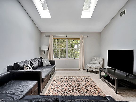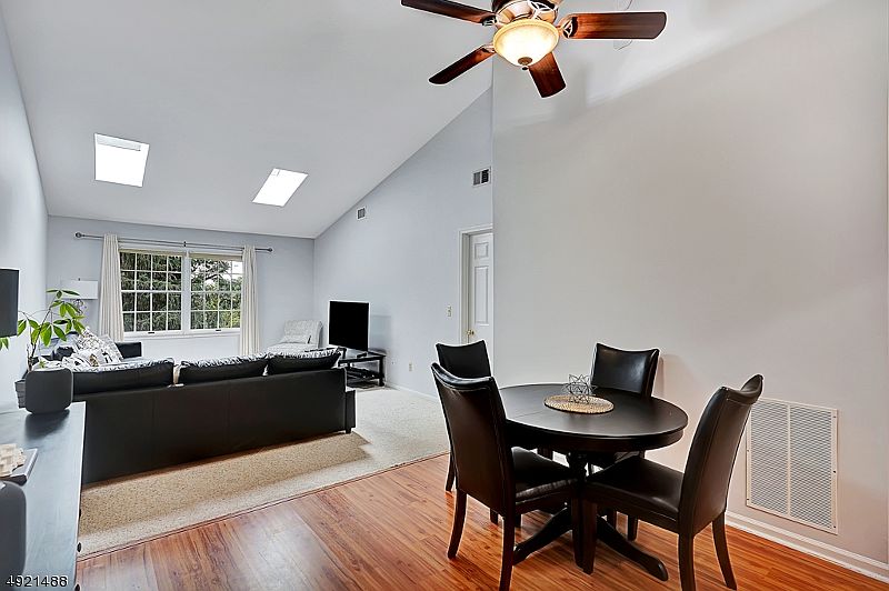 Stylish condo living awaits in this desirable Essex II model in sought after Spring Ridge! Updates galore and an abundance of storage! Enjoy one level living in this open concept condo with laminate floors, soaring ceilings, skylights and newer recessed lighting. Enjoy casual dining at the breakfast bar or entertain in your dining room with ceiling fan. Relax in the living room illuminated by skylights and window wall. The spacious master bedroom offers walk-in closet and updated bath. Additional bedroom with access to a private deck, full updated bath and laundry room complete the home. New HVAC! Amazing community amenities including clubhouse, pool, paths, and tennis courts. Convenient to major highways, NYC transit, shopping, recreation and more!