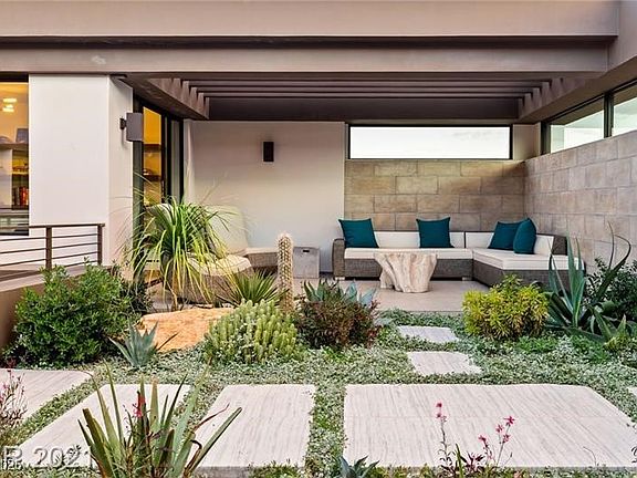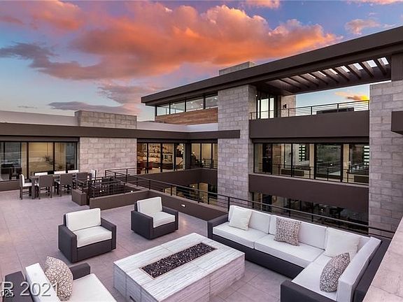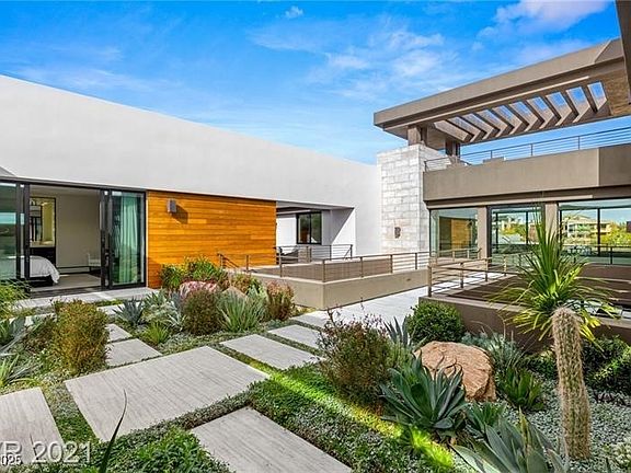 FULLY FURNISHED! This architectural gem spans 11,211 sq ft of living space and sits on a lush 1-acre lot, offering unparalleled privacy and panoramic views within the exclusive guard-gated community of The Ridges in Summerlin. Upon entering, you're greeted by expansive living and dining areas that seamlessly blend into the home's open floor plan. A striking glass-walled wine storage adds a touch of elegance, while the chef's kitchen boasts top-tier appliances and finishes. The estate includes 6 beds, 8 baths, a 4 car-garage, detached casita, an exercise room, a dedicated home office, and a state-of-the-art home theater, ensuring every need is met with sophistication. The fully landscaped backyard is a private sanctuary, featuring 2 saltwater pools, a jacuzzi, fire pit, grilling area as well as a waterfall edge that flows into the lower level where you'll find a beautiful Koi pond. It's perfect for those seeking tranquility, luxury, and entertainment all in one place!