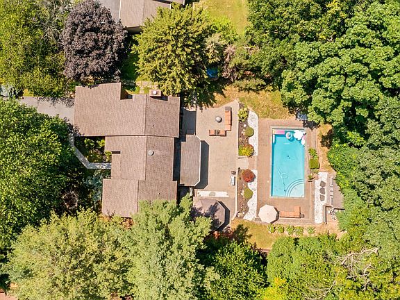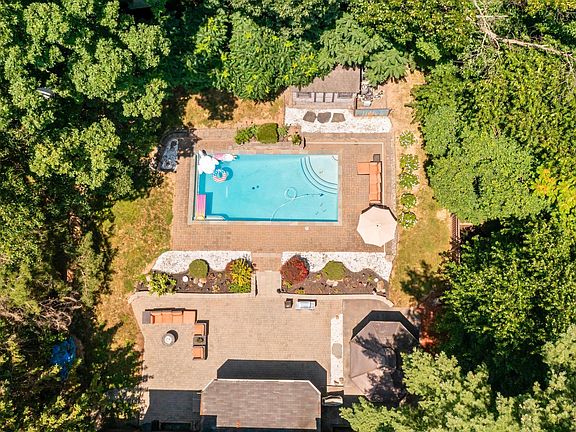 Welcome to 4 Spruce Ct! Entering through the main double doors you will love the lavish setting. To your right you will find a large and welcoming living room with adjoining dining area, adjacent to the kitchen. The large kitchen features a throughtful floor plan with breakfast bar, table space, and stainless appliances. The family room connects with the kitchen allowing for easy flow to your day, and an inviting wood burning fireplace. The connected four seasons room offers access to the star of the home - a meticulously hardscaped exterior living space with gazebo and an in ground pool. Upstairs you will find a generously sized primary suite with french doors and an en-suite bathroom - unwind in your jacuzzi tub at the end of the day in your private oasis. Two additional bedrooms share a large hall bathroom. The lower level of the home is perfectly appointed for entertaining, with a built-in bar, second refrigerator, office space/additional bedroom, and built in theatre.