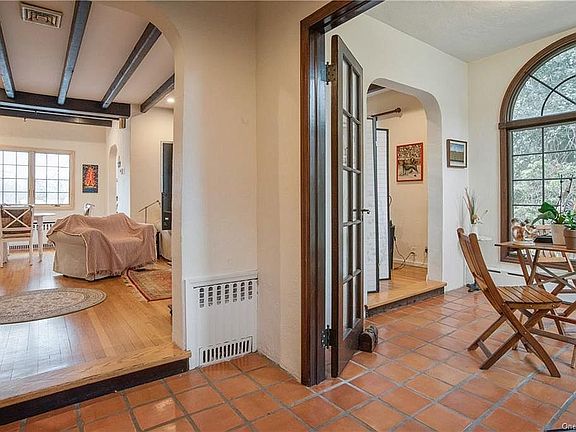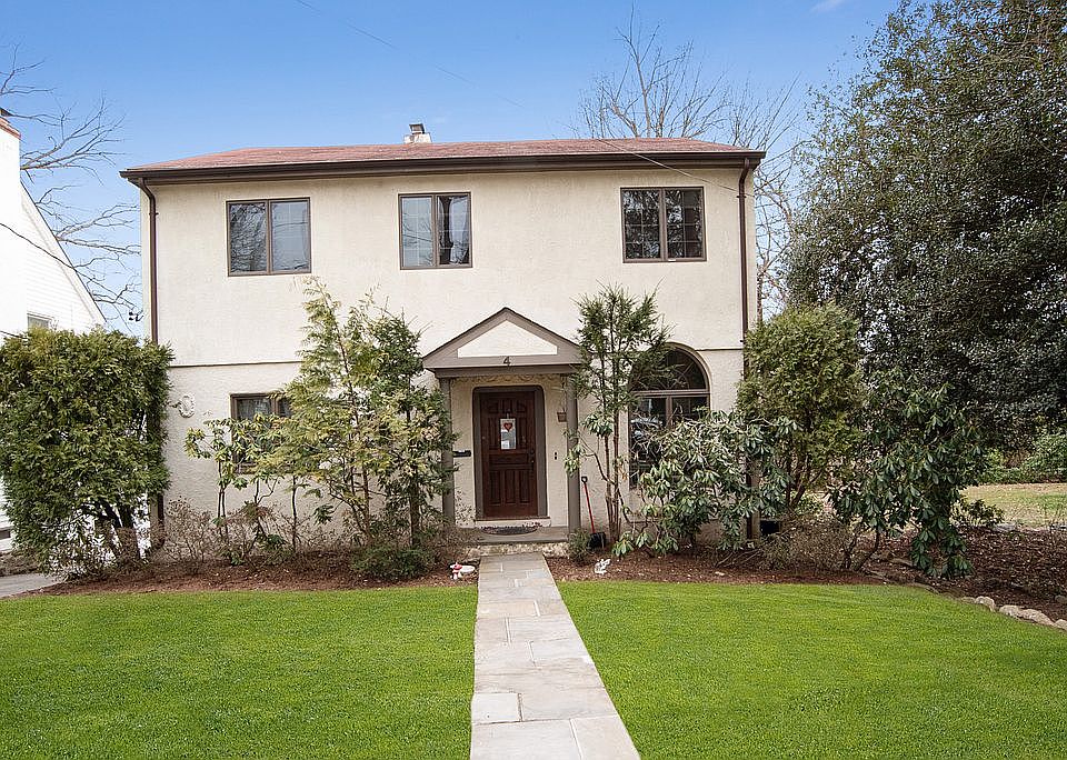 Perched atop Larchmont Woods and conveniently located near the Village, train and School. This charming Mediterranean style home with French accents offers an entry hall to living room with fireplace, sun room, formal dining room, eat in kitchen, Den/Office/BR and full bath. Second floor includes Master bedroom/bath, 3 additional bedrooms and full Bath/Jacuzzi. Recently updated and refinished with new main floor windows and beautiful arched windows featured in the sun room. New AC, refrigerator, dishwasher, washer and dryer. Lower level has a spacious recreation room (with separate bathroom/shower, good for nanny/au pair BR as well) with 2 separate walk out exits and laundry room. C.O. on file in town. Fenced in backyard with doggy-door makes this home perfect for 4-legged friends as well. On quiet dead end street, perfect for young families with kids. Pre-approval or proof of funds required prior to showing confirmation.