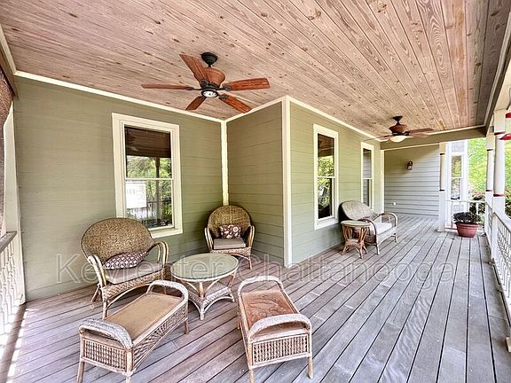 This beautiful Signal Mountain home is located on a quiet cul-de-sac and is ready for you to call it home! The large front porch is the perfect space to entertain friends while you enjoy the weather. The front door opens up to the grand staircase with the large living room with a fireplace to your right, and the open concept dining and living area to your left. There is a sunroom right off of the kitchen area and a side door to the driveway right off of the kitchen which opens to a small side porch with a swing and climbing roses. There is an additional screened in porch directly off the living room with access to the back yard. The spacious primary suite has a walk-in closet, full bathroom with double vanity, and it's own private sunroom/office space.