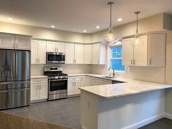 Large three-bedroom, two-bathroom, and two parking spaces are included in the rent. The primary bedroom suite has a fabulous bath with a special night light and a WiFi-controlled sound system for music. This unit features hardwood floors and 9-foot ceilings, porcelain tiled bathrooms, and a master bath with a night light system. The open floor plan kitchen has quartz counters, stainless steel appliances, and soft-closing cabinets. Navien heating system by Hydro-air and Nest WiFi thermostat - can be controlled from your smartphone! The MBTA 111 bus line is only steps away - 22 minutes to North Station and quick access by car to Route 1. The apartment is ready for occupancy on December 1, 2024. The first and last month's rent and the broker's rental fees are due at the lease signing. The tenant pays gas, electricity, and water charges.