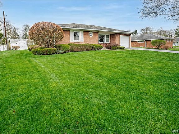 Pristine brick ranch nestled in a park like setting. Large living room, kitchen with generous counters and storage.. Dining area. Bedrooms with large closets. One car attached garage with built-ins. Basement entrance from garage. Original kitchen cabinets in basement for second kitchen uses. Work room, cedar closet as well. Partially fenced in yard. Patio with awning option. Shed. Weedman lawn care and lawn mowing for the season included. Lawn sprinkler system in yard has not been used in years. Roof 2003. Offers due April 25,2024 at 11:00 am.