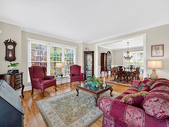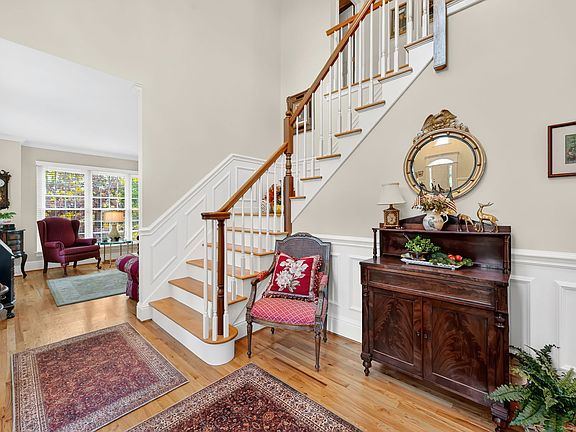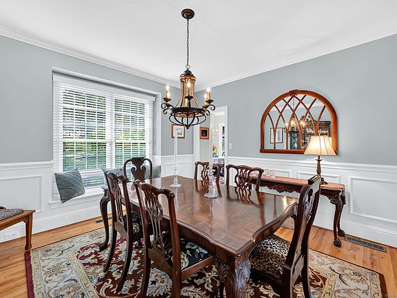 This stunning Center Hall Colonial was built with exceptional craftsmanship and sits on a sought-after cul-de-sac in scenic West Granby! A dramatic two-story foyer welcomes you with an elegant staircase and detailed shadow box wainscoting. The open-concept Kitchen flows beautifully into the Family Room and features white cabinetry, granite counters, stainless steel appliances, a spacious island for prep and seating, a walk-in pantry, tumbled marble backsplash, and a double oven. The breakfast room boasts a cathedral ceiling and is surrounded by windows overlooking the peaceful backyard. The Family Room offers a wood-burning fireplace, charming built-ins, French doors with a transom window opening to the deck, and a private staircase leading to the upstairs flex room. The first floor also includes a formal Living Room that opens to the Dining Room with wainscoting, gleaming hardwood floors, and a convenient laundry and mudroom. Upstairs you'll find four bedrooms, including a Primary Suite with a tray ceiling, walk-in closet, and spa-like bath featuring a jetted tub, maple cabinetry, double sinks, and a tiled shower. The second full bath offers double sinks, a vaulted ceiling, and a skylight. The versatile flex room at the end of the hall, currently used as an office, could also serve as a playroom or art studio. Additional features include central air, a three-car garage, shed, and a beautiful private yard! Beautiful sunset views from front yard! Recent Updates: Architectural hip roof, gutters, Boston City Hall brick walkway, exterior lighting, FULL HOUSE automatic generator (5/2022), driveway, interior/exterior painting & hardwood floor refinishing throughout (2020), new heating/AC & water tank (2024). The Barn Yard shed is perfect for storing garden tools. Enjoy nearby trails and streams at Nuckols Preserve or fresh produce from Holcomb Farm and The Garlic Farm. Only minutes to downtown Granby and Simsbury for restaurants and shopping. HOA is $150/annually in 2025. It covers the grounds maintenance of the garden at the cul-de-sac and the entrance to the street only, not the yard of the house. NOTE: See list of recent improvements attached on MLS. Audio/Video surveillance outside. See video on instagram.