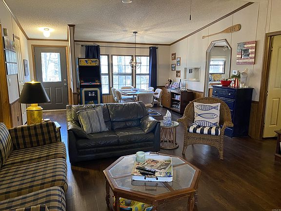 Check this home out! 3 bedrooms, 2 baths, approx. 1,456 sq ft, with a large screened in back deck for entertaining and trees for privacy. Vaulted ceiling in the nice sized living area with a wood burning fireplace and sliding doors to the screened in deck. Guest rooms each have double bunk beds so there is plenty of sleeping space for the kids AND their friends. This mobile home sits on .56 m/l acres and is located in Harbor South where you own the land it sits on! Call today for your private showing and start making your Lake Ouachita summer lake plans!
