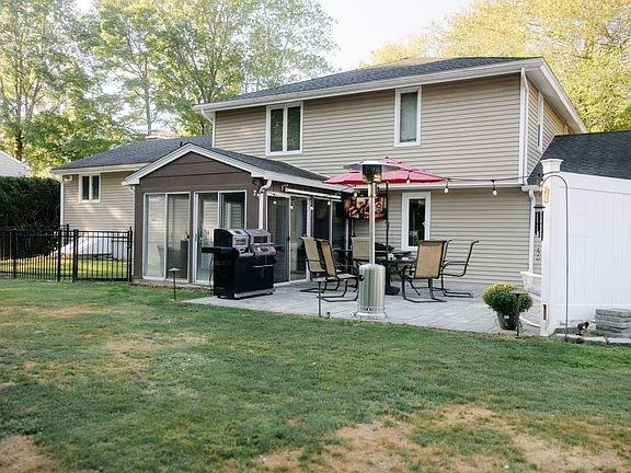 Welcome to this beautifully updated tri-level home in one of Hampton’s most desirable neighborhoods, just minutes to the beaches and a short stroll to town. This spacious 3-bedroom, 2.5-bath residence offers 1,788 sq. ft. of comfortable living with hardwood floors throughout, a wood-burning fireplace, and a thoughtfully renovated kitchen featuring granite countertops, newer cabinetry, and stainless-steel appliances. Enjoy natural light year-round in the inviting 3-season sunroom, or step outside to the new patio overlooking the level corner lot, fence with irrigation—perfect for entertaining and everyday living. The flexible floor plan includes a convenient mudroom entry, a primary bedroom with a private bath, generous storage space in the basement, and a roomy 2-car garage. Set on a .34-acre lot in a sought-after Hampton neighborhood, this well-maintained home combines charm, comfort, and convenience. Don’t miss your chance to call this one home! Open House Saturday 9/20 1:30 to 3:30 and Sunday 9/21 11-1pm