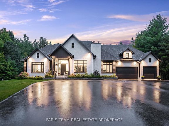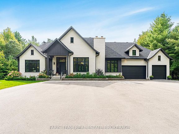 Top 5 Reasons You Will Love This Home: 1) Professionally designed and newly built in 2022, this custom bungaloft combines timeless craftsmanship with modern elegance, offering a residence that feels both brand-new and thoughtfully curated 2) Showcasing architectural grandeur, the home boasts 10' ceilings throughout and a dramatic 12' ceiling in the dining room, enhanced by custom shiplap, coffered detailing, and expansive windows with custom window treatments throughout framing the beauty of the estate 3) A true culinary masterpiece, the chef-inspired kitchen features quartz countertops, custom cabinetry, a walk-in pantry, and a striking white oak island that anchors the space with style and sophistication 4) Explore the primary retreat beyond compare, flaunting its own fireplace, a private terrace with views of the grounds, a spa-like ensuite with a steam shower, and two remarkable walk-in closets, one of which could easily be converted back into a bedroom or nursery 5) Established in an exclusive setting, this professionally landscaped 4-acre estate delivers complete privacy and prestige, all while being just minutes from golf, skiing, pristine beaches, and convenient access to the GTA. 3,679 above grade sq.ft. plus a finished basement.