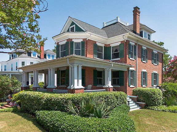 One of Cape Charles' most coveted homes—just one home from the beach on tree-lined Tazewell Ave. This impeccably kept 1913 brick Grand Dame sits on a double lot w/ mature landscaping & Chesapeake Bay views from most rooms. Inside, original moldings, hardwood floors, generously sized rooms, tall ceilings & propane fireplace add timeless charm. The gourmet kitchen is filled w/ natural light & opens to a handsome dining room. The living room & parlor offer elegant entertaining space. The massive wraparound porch w/ deep overhangs is perfect for enjoying bay breezes & unforgettable sunsets. With 4 bedrooms, 4 full baths which includes finished 3rd floor this architectural gem offers space, beauty, and an unbeatable location. Plenty of off street parking! Walk to shops, restaurants & galleries