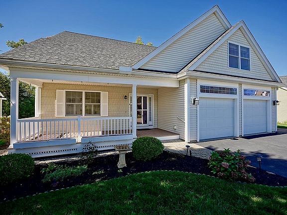 Welcome home to this stunning, detached Cape nestled in a quiet cul-de-sac in the coveted Preston Place 55+ community. Thoughtfully designed for comfort and style, this light-filled home offers a first-floor primary suite with tiled shower and walk-in closet. Enjoy the effortless flow from the inviting entryway through the dining room, gourmet kitchen with center island, living area with gas fireplace, sunroom, and deck—perfect for entertaining or quiet mornings. Upstairs, find two spacious bedrooms plus a versatile bonus room ideal as a second living area, office, bunk room, or guest retreat. The walkout basement provides excellent storage or workshop space, plumbed for a propane heater. Outside, a covered farmer’s porch and fenced rear yard add to the charm. This Geo-Thermal Energy Smart Home includes central A/C, irrigation, and a two-car garage. Life is truly maintenance-free with landscaping, snow, and trash removal managed by the association—all with low HOA dues. Enjoy walks through the neighborhood or to nearby cafés, restaurants, and a wine bar. Minutes to downtown Dover, Portsmouth, and the Seacoast, and quick access to the Lakes and Mountains —easy living at its finest. This home is a must-see and will go fast!