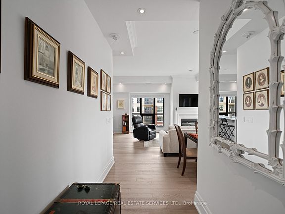 Welcome to an exclusive residence in the heart of prestigious The Kingsway. This boutique luxury building features just 34 suites and showcases timeless Beaux-Arts-inspired architecture by renowned architect Richard Wengle, with interiors by Brian Gluckstein. This rarely available corner suite offers approx 1,327 sqft of light-filled, elegant living space with 2 bedrooms, 2 full baths, and high-end finishes throughout. The open-concept living/dining/kitchen is surrounded by oversized windows that flood the space with natural light. The chefs kitchen is designed to impress with Quartz counters and backsplash, a centre island, premium appliances, and ample storage. The living area features a cozy gas fireplace, crown moulding, and remote blinds throughout. The spacious primary suite offers his & hers closets (including a walk-in), a luxurious 5-piece ensuite, and a walk-out to the balcony. Second bed perfect for office/guest room with spacious closet. Full 3pc 2nd bath. Additional highlights include in-suite laundry, 1 parking, 1 locker, and top-tier amenities: concierge, gym, lounge, and a large 3rd floor outdoor terrace with dining and lounging space. Steps to Bloor Street, Subway, Kingsway & Bloor West Village, Humber River trails and more. This is refined living at its best!