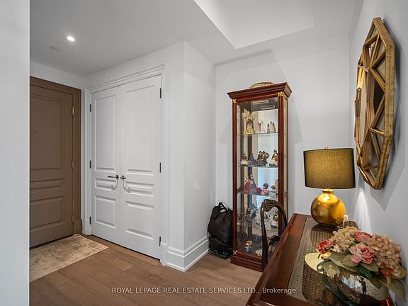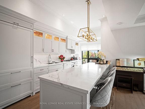 Welcome to true luxury living in The Kingsway! This spacious 2 bed, 2 bath suite offers approx 1505 sqft of refined elegance in a boutique 8-storey building with only 34 suites. Bathed in natural light from oversized windows, the open-concept living/dining/kitchen area features crown moulding, a cozy gas fireplace, and a walk-out to your private balcony. The chefs kitchen impresses with Quartz counters & backsplash, high-end appliances, large centre island, and incredible storage - rare for condo living! The primary retreat includes his & her closets (one walk-in, two double closets), a Juliette balcony, and a gorgeous 5pc ensuite. A spacious 2nd bedroom with more than double closet and stylish 3pc bath are perfect for guests. Enjoy the in-suite laundry room with sink, storage, and hanging space. Includes parking & locker. Building amenities: concierge, gym, lounge, and a stunning 3rd floor terrace - perfect space to BBQ. Walk to Bloor shops, subway, cafes, parks & Humber River trails. A Richard Wengle designed gem with interiors by Brian Gluckstein.