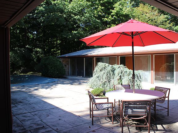 Spectacular property abounding in natural beauty. Mid-Century contemporary built around swimming pool courtyard, offering total privacy. Beautiful stonework. Located on a quiet cul-de-sac in a location convenient to Rye and Harrison, schools, shopping and transportation.