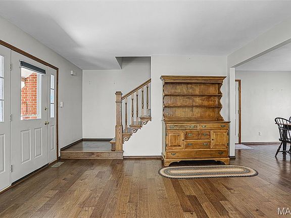 Spacious and beautifully maintained 5 BR, 3.5 BA two story home on 1.68 acres minutes from downtown Edwardsville, IL! This move in ready home features a main floor living room w/ woodburning fireplace opening to a separate dining room. Updated hardwood floors throughtout the main level, stairs and upstairs hallway. A newly updated kitchen featuring quartz countertops, ample cabinet space, tile backsplash and updated stainless steel appliances. Enjoy natural light year round in the bright and airy sunroom which provides additional dining or living space. Behind the two car oversized garage, you'll find a bonus room perfect for a home gym, playroom or hobby space. Upstairs, 5 generously sized bedrooms and 3 full baths offer an abundance of room for family, guests or office spaces. The large master BR suite features a full bath w/ walk in shower, whirlpool tub and double vanity. The upper level boasts a huge bonus room w/ electric fireplace- ideal as a teen lounge/media room. The lower level includes finished space for a home office, an add'l workshop area and plenty of storage. New sump pump-2023. Step outside to an above ground pool, freshly stained two level deck, charming gazebo and shed. The partially fenced yard was recently landscaped with trees and shrubs and offers a peaceful, park like private setting with plenty of room to garden, play or entertain. Located in the Eville School District minutes from SIUE and interstates. Country living with all the convenience!