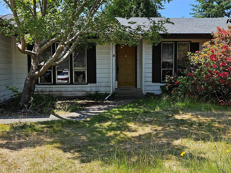 Fixer property at the end of cul-de-sac on on top of Cosmopolis Hill! Large, beautiful lot. One-level, mid-century feel with easy entry. New roof in 2019. Fireplace in the den/kitchen. Full bath off primary. Slider in kitchen to back yard. Mature landscaping. Attached garage. Or begin again and build a two-story with a view with utilities on site.