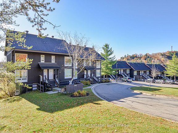 SKI SEASON IS RIGHT AROUND THE CORNER & there is no better place to enjoy it than right here at 4 Turner Drive! WHETHER YOU CHOOSE TO LIVE, WORK OR PLAY AT THIS BEAUTIFUL HIDDEN VALLEY LAKESIDE CHALET - IT COMES COMPLETELY FURNISHED, TURN-KEY & READY TO ENJOY! Discover this beautifully renovated (2022), 3+ bedroom, 2 bathroom condo with sweeping views of PENINSULA LAKE. Mere minutes from Huntsville amenities in the highly sought-after Hidden Valley area, this year round gem is just steps from both the lakefront & Hidden Valley Highlands Ski Area, making it an incredible ski chalet or 4-seasons retreat. With nearby golf courses, hiking trails, charming local dining & shopping, this location is perfect for those seeking a true Muskoka escape or a SMART INVESTMENT OPPORTUNITY. From the moment you step inside, you will appreciate the craftsmanship, attention to detail & thoughtful layout. Main floor boasts 2 spacious bedrooms & 4-piece bath - perfectly suited to provide maximum privacy for family & guests. The second floor features an open concept living area with a custom crafted & fully equipped kitchen (appliances included), a welcoming dining space, a cozy great room with a wood-burning fireplace, plus the added convenience of in-suite laundry. BONUS SITTING ROOM off of the kitchen is an ideal space for a large HOME OFFICE, or potential creation of a 4TH BEDROOM. The private penthouse level boasts an oversized primary bedroom suite, complete with a gorgeous 3-piece ensuite & custom closets (be sure not to miss the huge storage area behind the wall-to-wall closet - GREAT MULTI-SEASON STORAGE for your skis, paddle boards, golf clubs, etc). Ready to MOVE IN & ENJOY from day one, this extremely well appointed offering also offers 3 private balconies to take in those peaceful Peninsula Lake views. With DEEDED ACCESS TO A PRIVATE BEACH and the option to rent a BOAT SLIP, this is a rare opportunity to own a hassle-free Muskoka property designed for every season. Call today