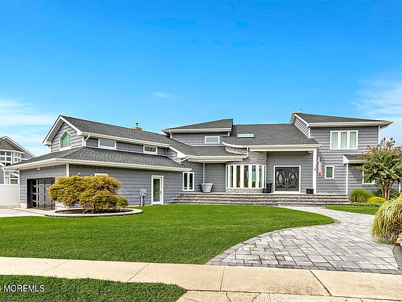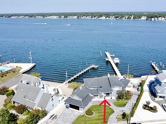 Custom built 4000 Sq. ft, 6 bedroom/4 bath open floor plan home with 180 degree views of the Metedeconk River totally renovated in 2022! Sleeps 16. All new .....siding, roof, garage doors, lawn, pavers, front steps, fencing, kitchen (handmade cabinets/glass in doors), baths, windows, doors, fireplace, decks, dehumidifiers under house, HVAC, 3 boat lifts, floors, Restoration Hardware lighting throughout & RH bathroom vanities. Gorgeous 2 story entrance foyer with a curved, solid oak-stained staircase, 2 story great room with a fireplace, custom kitchen with upgraded appliances (Subzero, Wolf,), 2 master suites, appx. 100ft. of bulkhead, 214 ft. dock with boat/jet ski lifts, a private beach & SPECTACULAR river views & sunsets from almost every room! Short bike ride to the ocean beach.