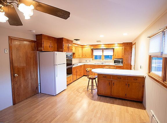 A must see large five bedroom two bathroom colonial nestled in the village of Buzzards Bay within very close walking distance to the town beach and main street Buzzards Bay. The house boast large spacious rooms throughout including first floor master bedroom, walk-in closet and newly upgraded Bath Fitter shower installation. Laninate flooring throughout first floor and beautiful solid oak stairs to second floor. Four large rooms and full bathroom compliment the second floor which has all new laminate flooring in every room. Endless possibilitiies in the finished basement bar area. Great space for entertaining. Brand new laundry room with new washer and dryer in the walk out basement. New roof installation in 2020. All new cement walkway and stairs 2024. All new gutters 2025. There will never be concern for winter storms or power outages as the house includes a full house well maintained Generac generator. Brand new five bedroom title five septic system completes this beautiful home ready for the right owner.