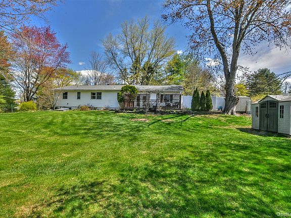 SELLER IF OFFERING A $7K CREDIT THROUGH THE END OF OCTOBER. Enjoy the ease of one level living in this beautifully maintained 2 bedroom, 2 bath ranch set on a private, peaceful corner, level lot offering over an acre of land with bordering pine trees and a variety of flowering specimens in the desirable Dogwood Knolls Estates. Full of character, charm and expansion potential., this ranch home was originally three bedrooms , and can easily be converted back to suit your needs-whether you are upsizing, downsizing for a flexible floor plan. The inviting front porch leads into a bright open living space featuring a cozy wood burning stove for relaxing evenings . The spacious kitchen and dining areas flow together for ideal entertaining and the finished breezeway used as a family room adds to extra year round living space. The spacious primary suite offers 3 closets. The second bedroom and updated full hall bath complete the first floor. The lower finished level provides more living space for an office, home or guest quarters with a convenient full bath and storage area. Step outside to a private fenced yard and patio with a serene koi pond with a waterfall - your personal backyard retreat. The expansive backyard and side yard offer endless possibilities. Great location with easy access to local shops, dining and commuter routes- Taconic, RTE 82, I84, NYS Thruway, Newburgh Beacon and Mid-Hudson Bridges. This is your chance to own a versatile home with peaceful vibes and room to grow in a well-established neighborhood.