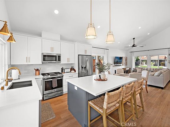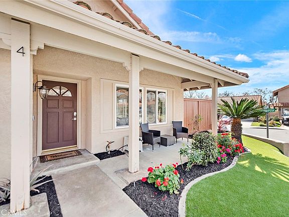 PRISTINE CORNER LOT HOME THAT SHOWS LIKE A MODEL! Welcome to 4 Via Bellorita, an extraordinary residence nestled in the heart of the prestigious community of Rancho Santa Margarita. This home features low maintenance artificial turf in the front and back yards. Showcasing a redesigned kitchen and living room which expands the flow of this sought after floorplan. As you step inside, you'll immediately be drawn to the newly updated luxury vinyl plank flooring, recessed lighting, and sliding doors creating a warm and inviting atmosphere. The spacious living room effortlessly transitions into the stylish dining area, where oversized windows flood the space with natural light. The gourmet kitchen is a chef's dream, showcasing pristine quartz countertops, custom white cabinetry, and top-of-the-line stainless steel appliances. With a large center island and ample prep space, this kitchen is perfect for both everyday meals and entertaining guests. Your stylishly upgraded main floor bed and bath is in high demand for those avoiding stairs or someone wanting an office or play area for the kids. Enjoy views of Saddleback mountain from your primary suite which has also been recently modernized to reflect a sophisticated sense of style. Both guest bedrooms are of ample size and the home is complete with a nest thermostat, newer water heater, EV car charger, and designer fixtures. Centrally located in Rancho Santa Margarita, this home is just moments from award-winning schools, local shopping, and recreational areas like Rancho Santa Margarita Lake. Experience the perfect blend of style, comfort, and convenience at 4 Via Bellorita. This is the home you've been waiting for!