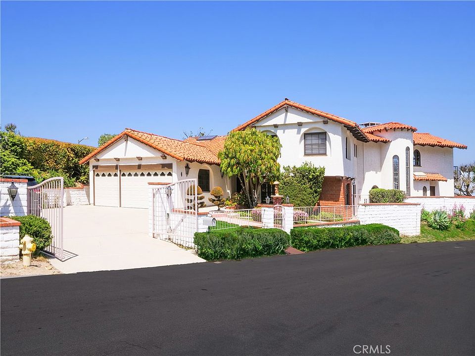 On the hunt for an incredible retreat that captures panoramic harbor, ocean and mountain views? Standing proud on a highly coveted elevated lot, this spectacular gated Palos Verdes home might be just what you are looking for! Open concept gathering areas dazzle in living room under beam vaulted ceilings, white brick fireplace and sliding door access to breathtaking surroundings. Share fantastic meals overlooking awe-inspiring panoramas in the chandelier-lit formal dining room or grap an informal meal in the country kitchen featuring extensive use of granite, cherry finished walnut cabinets and loads of storage. Wake up refreshed in the comforts of the bedrooms, the grandest of which is the master suite with balcony access to the view and oversized walk in closet, attached bath and adjacent 2nd floor family room. Perhaps the best spot in the house , the lower level family room is an entertainer's haven with an elegant wet bar with seating for 8 persons, another fireplace and adjacent office with custom built in bookcases. The sun-kissed outdoor patio is perfect for having weekend BBQ or simply unwind in the pool or spa and enjoy dining in the custom built pergola. This magnificent private property has all the benefits of country living and yet has easy access to freeways, shopping, theatres, golf courses, beaches and