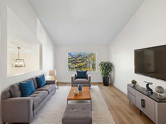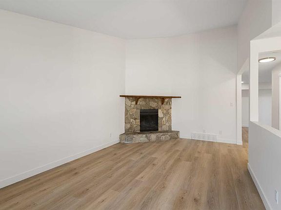 Across from green spaceThoughtfully designed layoutBrand-new vinyl flooringCozy wood-burning fireplaceStylishly renovated kitchenSleek white cabinetryQuartz countertops
