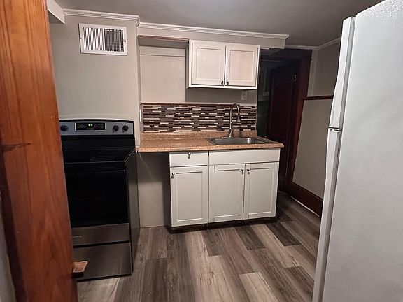 This unit features beautiful new flooring, freshly painted walls, a bright living space, and a clean, modern bathroom. The kitchen includes white cabinets, plenty of storage, and a stylish backsplash. The apartment has good natural light and a comfortable layout with defined living areas.