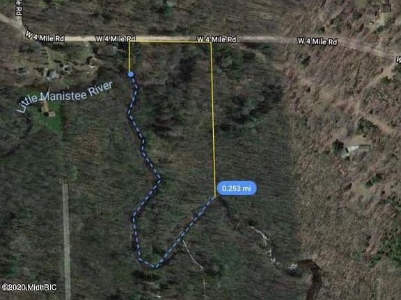 5.25 Acres on the beautiful Little Manistee River. Over1/4 mile of river frontage. Wonderful hunting and fishing property. Mature trees. The 5.25 acres includes 2 parcels: 43-06-013-049-00 43-06-013-051-00 Property has not been perked. No survey