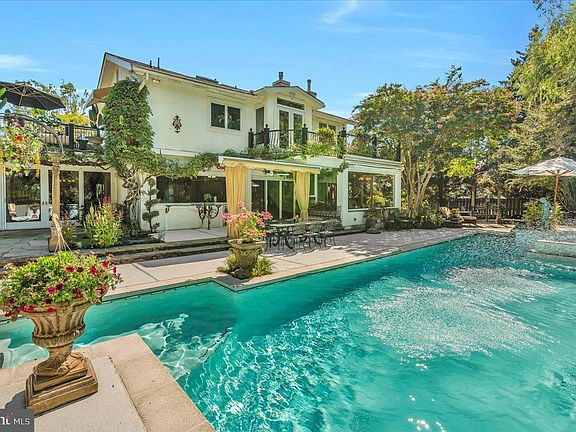 A masterpiece with timeless elegance, this Californian-style Mediterranean home is nestled in the private, gated Cherry Hill East community of Country Walk. From the moment you arrive, you’ll see this is no cookie-cutter property—it’s a true showstopper. Step into the grand foyer and be wowed by the stunning great room with soaring ceilings, custom paint and woodwork, dramatic lighting, a full bar with lighted onyx top and a remote-controlled movie/music screen.The flowing custom kitchen is an entertainer’s dream, featuring seating for 10+, double ovens, Birds Eye maple cabinetry, Sub-Zero refrigerator, water fountain, pantry, snack bar, granite countertops, and oversized windows engulfed with views of the exterior. The adjoining family room stuns with its imported marble fireplace and a wall of glass (13.5 X 5.5 foot window from Madrid) embracing the outdoors. The main level also offers two bedrooms, a luxurious full bathroom covered with onyx, and a richly detailed walnut office that leads to the rear staircase. Upstairs, the Four Seasons Madrid Suite awaits, complete with a sun-filled balcony, European-style spa bath with heated floors, custom built-ins, gas fireplace with a custom made stone mantel and a dream-worthy closet. Two additional bedrooms, a shared hall bath, and a laundry room complete the upper level. Outdoors, the private yard is a paradise filled with wisteria, rose bushes, lush landscaping, flower pots, gazebo, statues, multiple awnings, yard speaker/music, and a fireplace. Additional features include a two-car garage, partial basement, heated floors, whole-house generator, two new pool motors, and a brand-new shingle roof (2024). If you want one-of-a-kind craftsmanship and character, this home offers it all and more.
