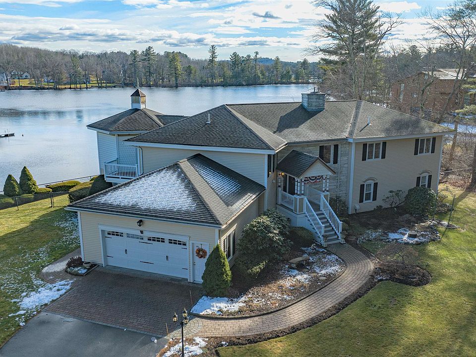 Waterfront living year round on Wilson's Pond in desirable Salem! This stunning home offers generational living, has been lovingly maintained, and provides privacy and comfort while enjoying all the benefits of direct waterfront. This is a 4 bed, 4 bath home (4th bed/bath not reflected on current tax card), with an inground pool and garden level living space with kitchenette with wet bar. The beautiful vaulted kitchen is reminiscent of a French chateau, through the kitchen step right out onto the balcony which overlooks the pool and waterfront. Enjoy relaxing and entertaining all summer in your inground pool. Everyone loves sitting by the fireplace, in this home you can enjoy two gas fireplaces. The primary bedroom offers a stunning en suite with tiled shower and soaker tub. Mature landscaping and a 1.97 acre lot allow for privacy in both the front and backyard. Enjoy the serenity of Wilson's Pond! This property offers 4 garage spaces - 2 attached, and 2 detached with power and heat. There is more than enough space for parking and entertaining. Excellent commuter location and convenient to shops and restaurants. Come and see this remarkable home for yourself! - Showings begin on 2/2/2023.