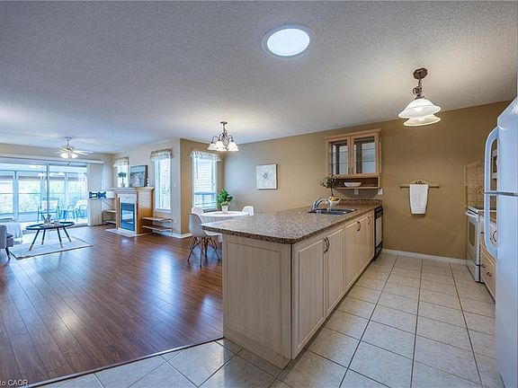 Welcome to 4 Walsingham Drive in the popular Adult Community: The Villages of Long Point Bay!! At the front of the home is the 2nd bedroom/office which includes a murphy bed - perfect for overnight guests, next is a full 4 piece bath, and then it opens up to the kitchen, dining area and living room with gas fireplace. The primary bedroom includes a large closet and an en suite bath with step in shower. The laundry room doubles as a large walk in pantry! At the back of the home is a large sun room overlooking the flower beds full of shrubs and perennials. There is a full basement, ready for you to finish or leave it and it provides plenty of storage. Attached single car garage, automatic full generator (2024). The clubhouse boasts an indoor pool, hot tub, sauna, billiards, library, games room, gym and banquet hall where many dinners and dances are held, and much more! Outside there is a large pond with a walking trail around it, shuffle board, pickle ball, bocce ball courts, garden plots and a lot to park your boats, trailers etc. Alternate mls: X12426593