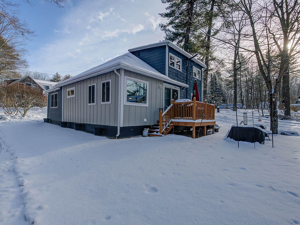 Cozy built-in electric fireplaceCharming nautical touchesFlooded with natural lightBeautiful back porchSea of windowsNew cabinetryEasy lake access