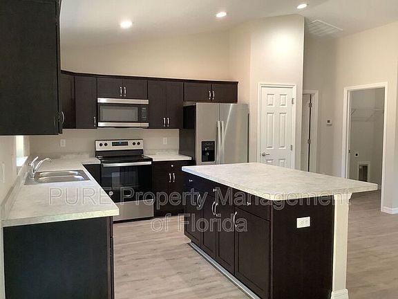 Home located in Silver Springs Shores featuring 3 bedrooms, 2 baths, and a 2 car garage. There is LVP in the kitchen/dining/living room, tile in both baths, and carpeted bedrooms. It has a large open concept with a split floor plan.