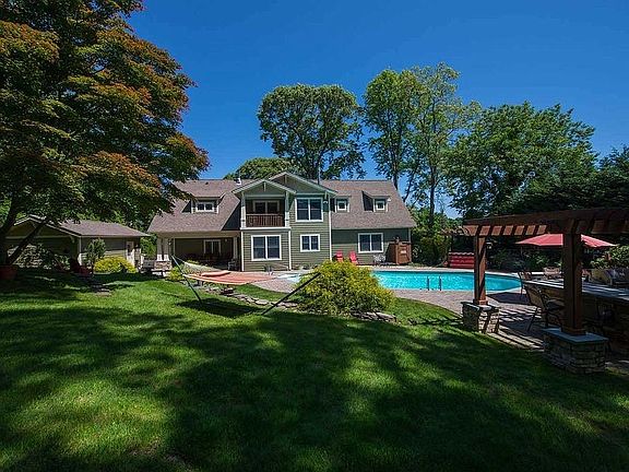 Welcome to this Gorgeous Custom California Craftsman set on .86 acres! The minute you walk up to the front door you'll fall in love. Large and spacious kitchen with beautiful granite countertops and island, island seating, and an adjacent open dining room with glass sliders to bluestone covered rear patio. Master bedroom with gas fireplace, and astounding walk out balcony to overlook the country club back yard! Electric fireplace in main floor office/bedroom, and cozy wood-burning stove in living room! Private backyard oasis comes with a large 20' x 40' inground pool, beautiful landscaping, large rear covered patio, hot tub with pergola covering, outdoor shower, and outdoor bar & BBQ built with beautiful masonry! Gorgeous detached garage matches the exterior of main house, with parking inside and plenty of driveway parking! All within the famed Three Village School District, and all of the beaches, parks, shops, and fine dining Three Village has to offer. Taxes w/ basic STAR $19,541.75