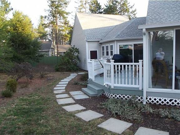 COMPLETE FIRST FLOOR LIVING. Beautiful contempory 2-3 bedroom ranch in DESIRABLE VILLAGE WAY. The neighborhood has rose granite curbing, brick sidewalks and a lighted gazebo in the middle of the cul-de-sac. Close to town, beaches, Rte 95 and 101. Large eat-in kitchen. HARDWOOD AND CEILING FANS THROUGHOUT. Vaulted cathedral ceilings, architectural windows. Central air and whole house generator. Gas fireplace surrounded by upscale marble. Master w/bath (separate showed & whirl-pool tub) and sliders to a private deck. Glassed sunporch overlooking mature landscaped back yard. Enclosed 3 season room with sliders to large open deck. Covered porch on front. Spacious and open concept. Washer/dryer on first floor. Large basement with bulkhead to back yard. Seller is a licensed realtor.