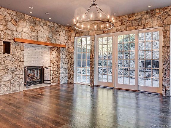 Outdoor stone fireplacePrivate cozy outdoor fireplaceCrown moldingTwo primary suitesPrivate elevatorSuperior stoneworkGated driveway