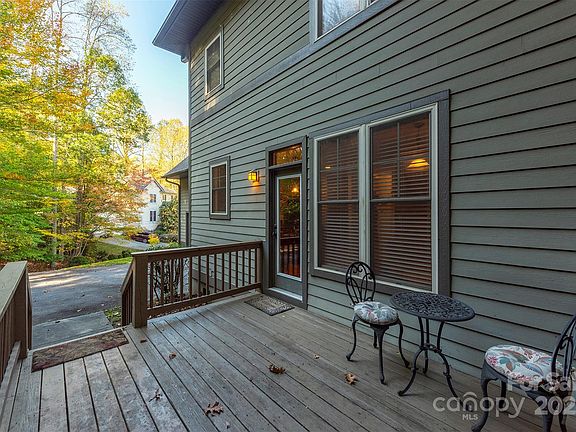 Welcome to your secluded mountain retreat at 4 Yellow Owl Drive, perfectly nestled within the highly sought-after, master-planned community of Biltmore Lake. House sits on elevated tree-covered hill with private driveway veering around. This spacious home delivers the private, woodsy ambiance of the Blue Ridge Mountains, complete with a seasonal mountain view and an unparalleled, amenity-rich lifestyle. The property is designed for year-round mountain enjoyment, featuring 4 outdoor living spaces with over 900 square feet of deck and porch space, including a rear deck and a generous covered front porch. Three decks are covered and have fans. Even the primary suite has a private covered porch. These multiple, private outdoor areas create a true sanctuary for relaxing, entertaining, and taking in a tranquil wooded setting.