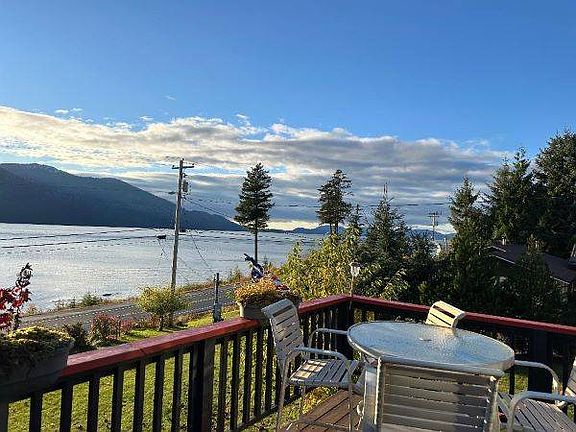This picturesque property offers a blend of luxury and practicality, nestled 4 miles from the heart of Wrangell with breathtaking views of Zimovia Strait and the encompassing mountains. This home boasts four bedrooms and three bathrooms, featuring exquisite solid wood flooring, a kitchen adorned with soft-close cabinetry, a dining room, and expansive living spaces that open onto a generous front deck. The master suite is a sanctuary with heated bathroom floors, a capacious walk-in closet, and direct deck access to savor the serene water vistas. The home's versatility is highlighted by its adaptable first floor, previously an apartment, now transformed into a spacious craft area with retained utilities for easy reconversion. The lower-level houses additional bedrooms, a bathroom, and ample living space, alongside a utility room and extensive storage, ideal for seasonal items. Completing this abode is the coveted heated two-car garage, equipped with 220-volt power, ensuring comfort and convenience for all your projects. Whether basking in the sunshine on the front deck or seeking solace in the shaded rear deck, this home caters to every preference.