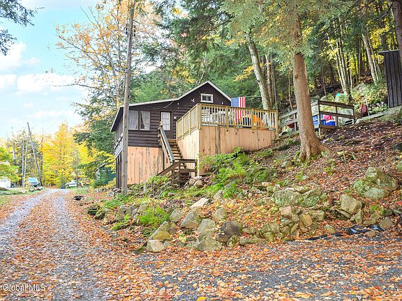 Rustic Retreat: Reduced for Quick Sale! Camp w/ Beach Access & Privacy on Lake Desolation Near 4-Wheel/Snowmobile Trails & Saratoga Springs! This vintage camp (1BR+attic loft) may be your perfect getaway from it all! Deeded lake rights provide year-round fun to swim, kayak, ice fish or snowmobile! Popular rental area! Current owner has improved structural integrity w/new concrete piers poured underneath&replaced deck for outdoor living area w/seasonal glimpses of the lake. Just 2/10 of a mi. to deeded water access including shared deck, steps, boat storage & shared dock. Open layout w/charming ADK & period details! Includes lot next door w/oversized shed (tax ID 135.8-1-62)Has 100-amp electric, NO Septic, No Well. Out house included! Price includes separate adjacent lot w/s. Open Sat 11-1