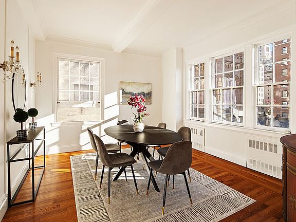 This prestigious cooperative offers white-glove service and a suite of refined amenities, including a full-time doorman, live-in superintendent, private storage, and a beautifully landscaped garden.