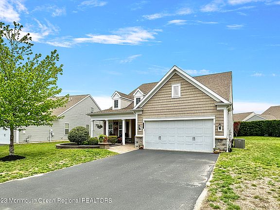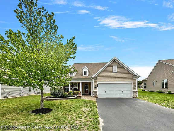 OFFER EXCEPTED>>Are you looking for a large, beautiful home in a 55 plus community? This stunning 3000 sq. ft., 4 bedrooms, 3 bath home, is for you. The upgrades are plentiful, starting with hardwood floors, a spacious cook's kitchen with butler's pantry, stainless steel appliances, custom cabinets and a large island with room for preparation and conversation. In one direction, through the butler's pantry, the kitchen flows into a comfortable home office and in the other direction you have a large living room with a mantled gas fireplace for those chilly fall and winter evenings. Beyond the living room is a bright and sun-drenched sunroom with plantation shutters that provides the exit to the 14 x 40 ft. Cambridge stone patio. Also on the first floor is a comfortable dining room, primary bedroom with en suite bath and large walk-in closet, plus 2 additional bedrooms and a full bath. There is a 2-car attached garage located just off of the mud room plus a walk-in laundry room. We are not done, there is a second floor with a living room, large bedroom and full bath plus plenty of storage. The amenities include indoor and outdoor pools, a gym, and much more. This flawless home is a must see.