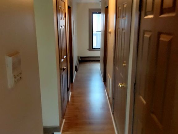 Historic brick buildingHot waterNice sized bedroomLots of closet spaceBrand new flooringGas heat