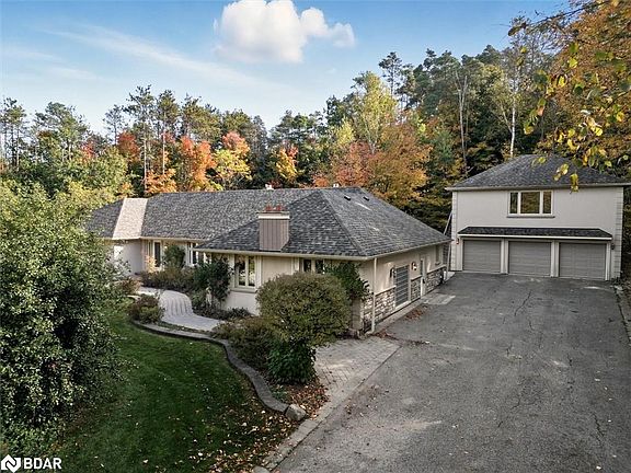 Spectacular Bungalow Located On A Breathtaking 2.6+ Acre Lush Private Property In An Executive Estate Neighbourhood Of Fine Homes. This Extraordinary Residence Offers 3 Separate Self Contained And Upgraded Living Spaces With Over 4,900 SqFt Of Finished Living Area, Including A Total Of 8 Bedrms And 6 Bathrms. Offering A Refreshing Saltwater Pool With A Stunning Waterfall Feature, Concrete Patio, And Solid Armour Stone Surround, This Property Is Truly An Entertainers Delight. With Numerous Updates And Quality Upgrades Throughout, The Main Level Features Hardwood Flooring, Wood Burning And Gas Fireplaces, 3 Luxurious Bathrooms, Quartz And Stone Countertops, A Spacious Deluxe Cinema Room, Main Level Laundry, And A Sun Filled Primary Bedrm Retreat With An Elegant Ensuite Bath. The Expansive Lower Level Features 3 Bedrms, 2 Full Bathrms, An Upgraded Kitchen, A Large And Well Appointed Living Area With Vinyl Flooring, Cozy Gas Fireplace, And A Private Second Laundry With New LG Washer And Dryer. The Detached Oversized Double Car Garage And Workshop Includes A Fully Self Contained Coach House Above, Offering 2 Bedrooms, A Full Bath, And A Third Kitchen, Perfect For Extended Family And Guests. Surrounded By Mature Trees, Towering Pines, And The Tranquility Of Nature, This Property Offers Stunning Forest Views And A Sense Of Peaceful Seclusion While Being Just Minutes From All Amenities. Only A 5 Minute Drive To Newmarket, The GO Train, Costco, Restaurants, Cinemas, And Shopping. This Rare Offering Combines Luxury, Country Comfort, And Convenience. Featuring An Attractive Paved Driveway With Ample Parking And Located On One Of The Most Prestigious Cul De Sacs In East Gwillimbury, This Property Showcases Versatility, Investment Potential, And Pride Of Ownership. Lots Spent On Quality Finishings And Upgrades Including New Electrical Panel, Tankless Hot Water Heater, Roof (2023, $26K), Several New Appliances, And So Much More! Vendor Offering VTB And Seller Financing.